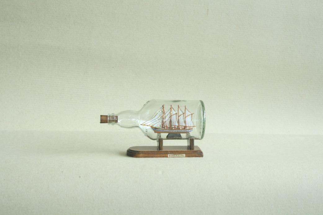 An exquisite miniature replica of the renowned Esmeralda ship, preserved in a delicate glass bottle. With its intricate craftsmanship and maritime charm, this model is a symbol of sailing excellence and nautical history.