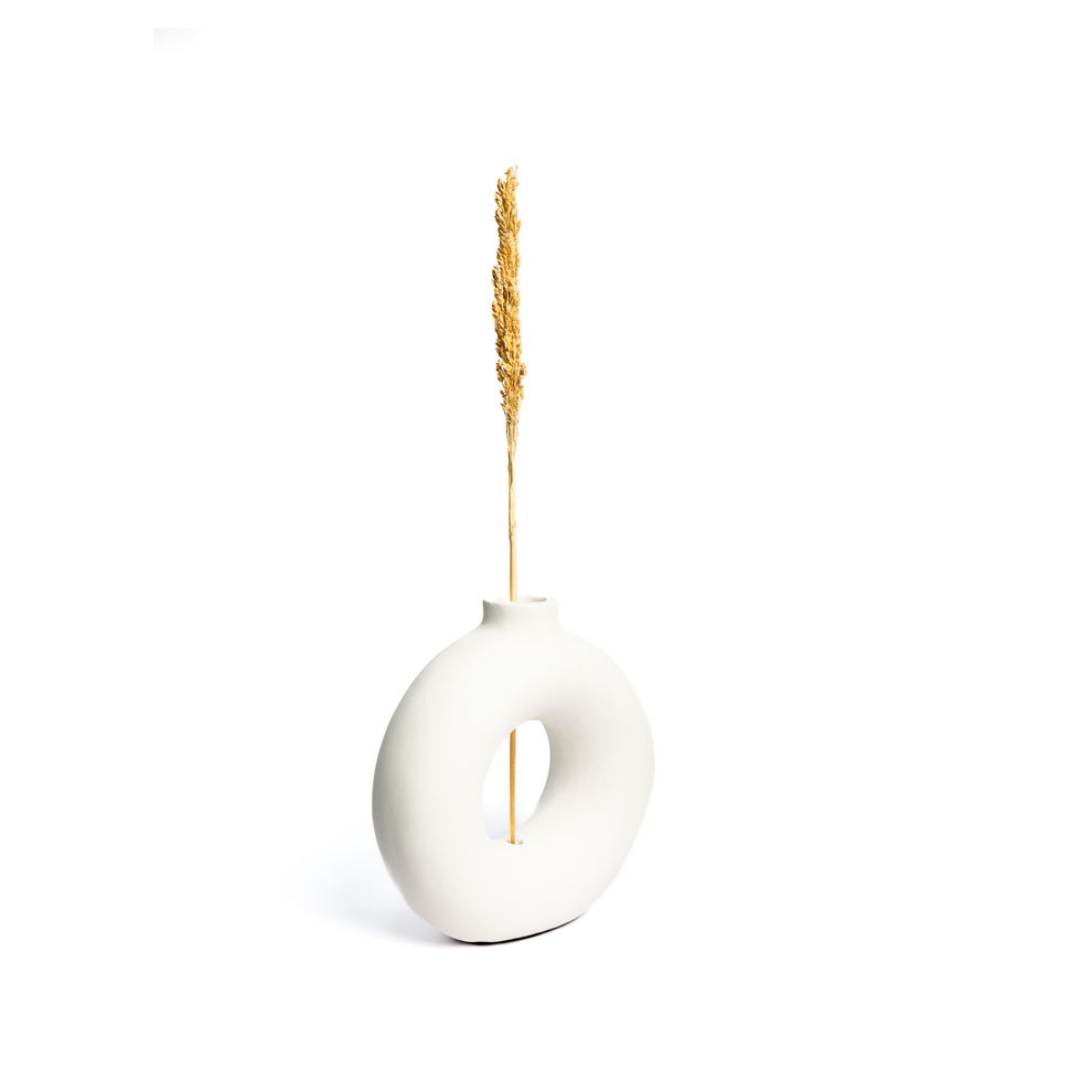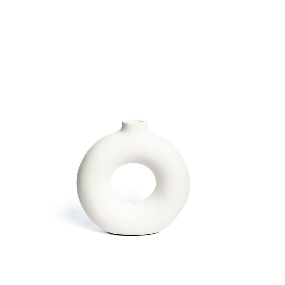 The Rosquilla Lanura Terracotta White Doff Vase is a beautifully handcrafted piece featuring a soft white doff finish. Its sleek and modern design makes it perfect as a standalone decorative element or a functional vase for flowers. This elegant piece effortlessly combines natural charm with contemporary sophistication, enhancing a variety of interior styles.