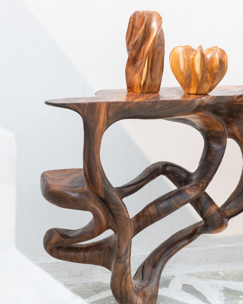 Organic Design: The console's shape follows the natural form of the wood, with undulating lines and curves that make it a conversation piece.